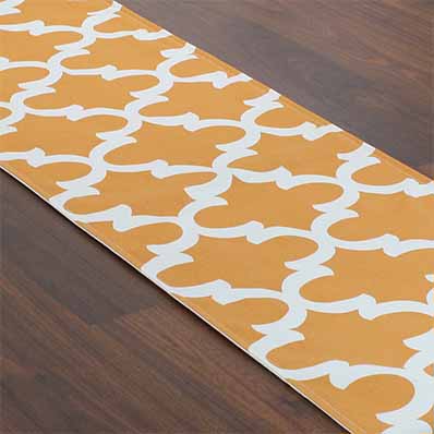Table Runner can design with texture one is rib runner & another one is fushing runner to get the stifiness Designs Available : Printed, Solid color, Checke & Striped pattern, Rib Runner, Embroidary,.etc.. AAccroding to the customer requirement we can change the size & design